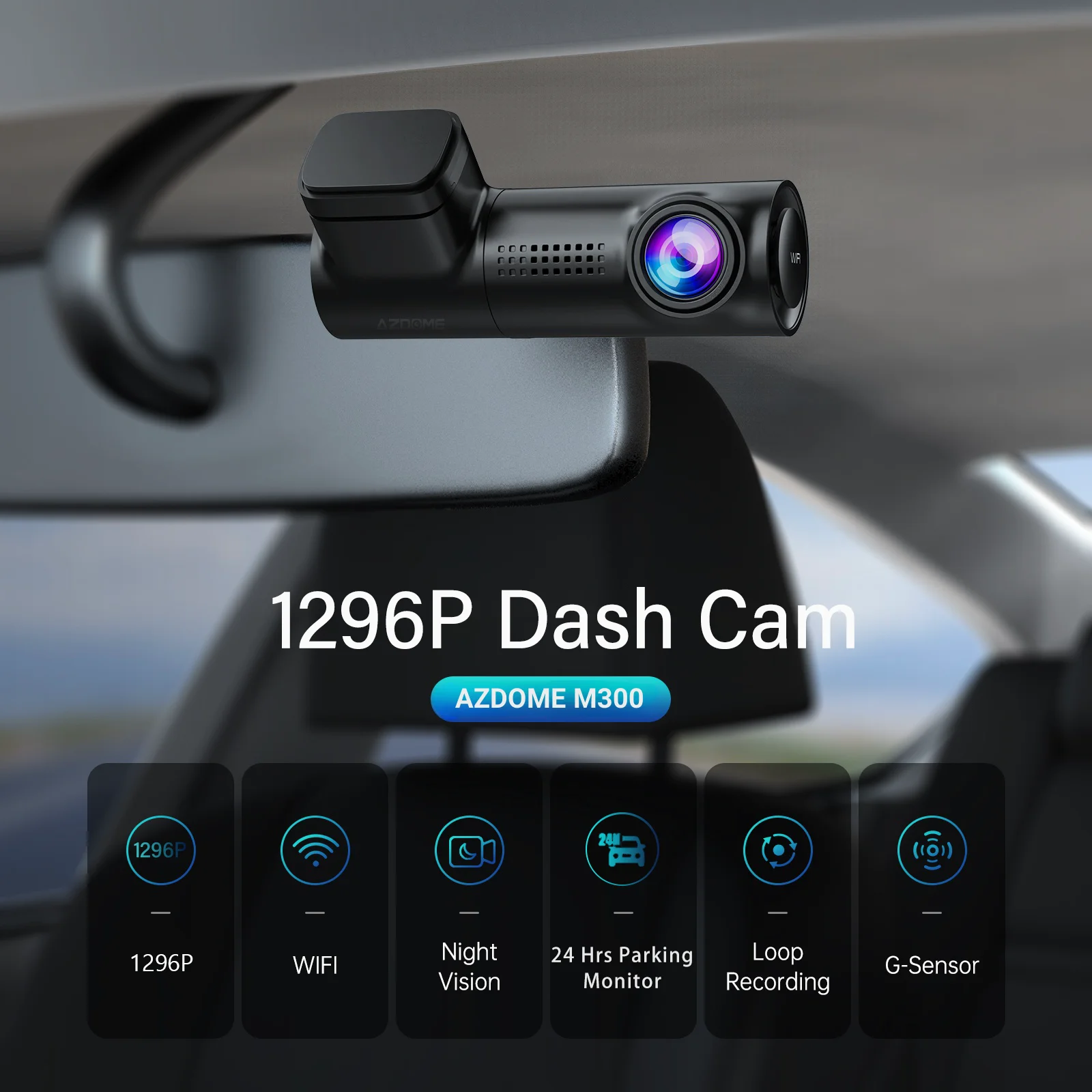 AZDOME Dash Cam 1296P WiFi Dash Camera for Cars Voice Control Dashcams Night Vision Loop Recording G-Sensor 24H Parking Monitor
