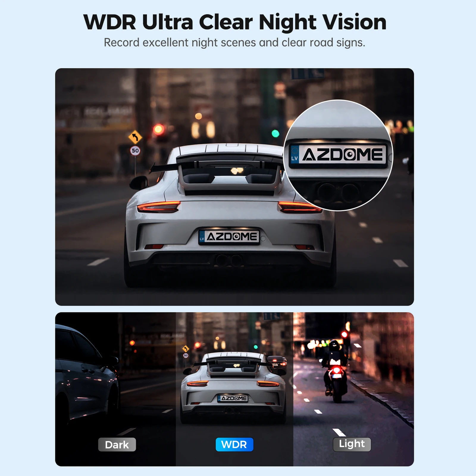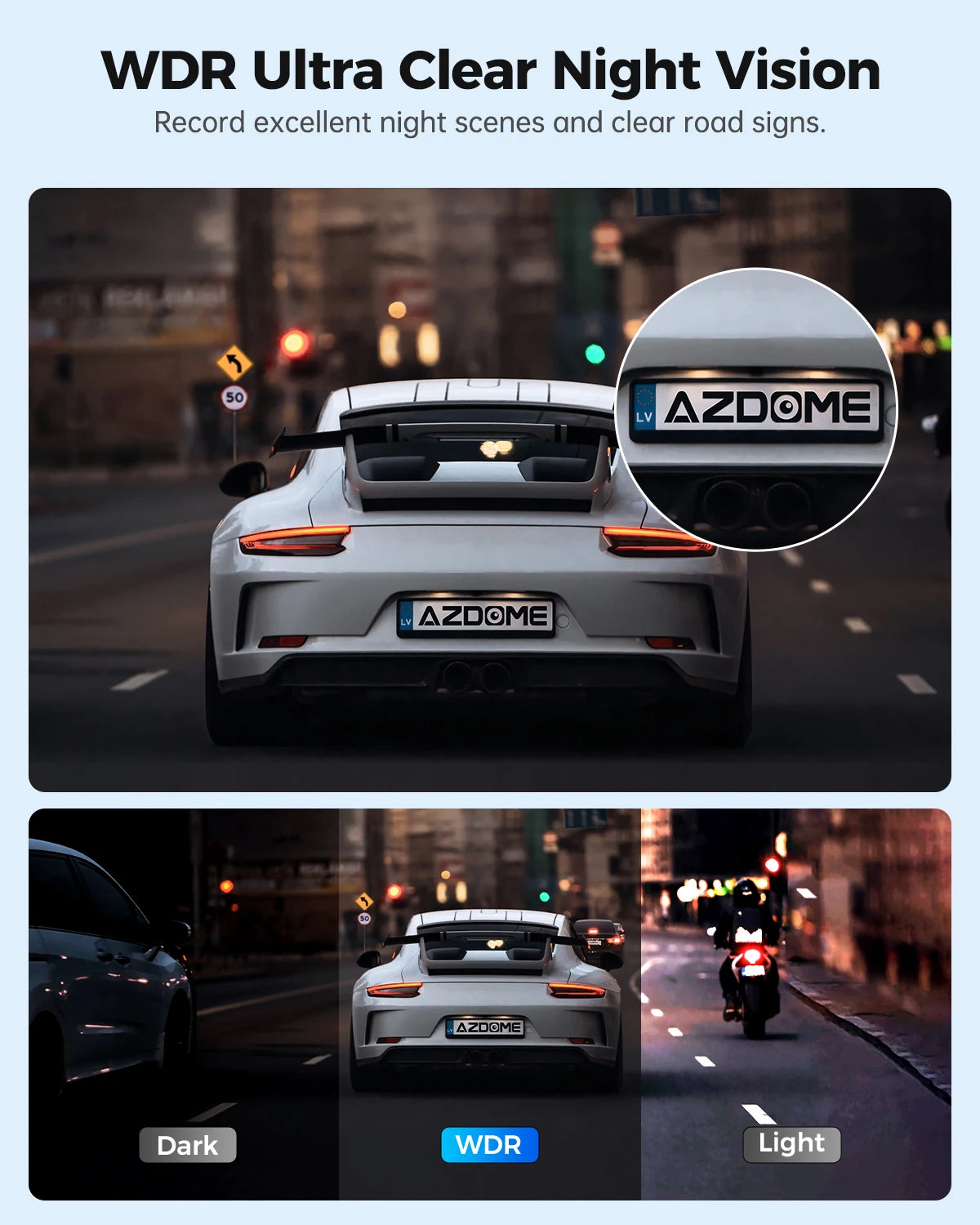 The AZDOME M300 built-in G-sensor automatically detects sudden impacts or collisions, instantly saving and locking critical footage. Loop recording seamlessly skips these locked emergency videos—ensuring key evidence is never overwritten.